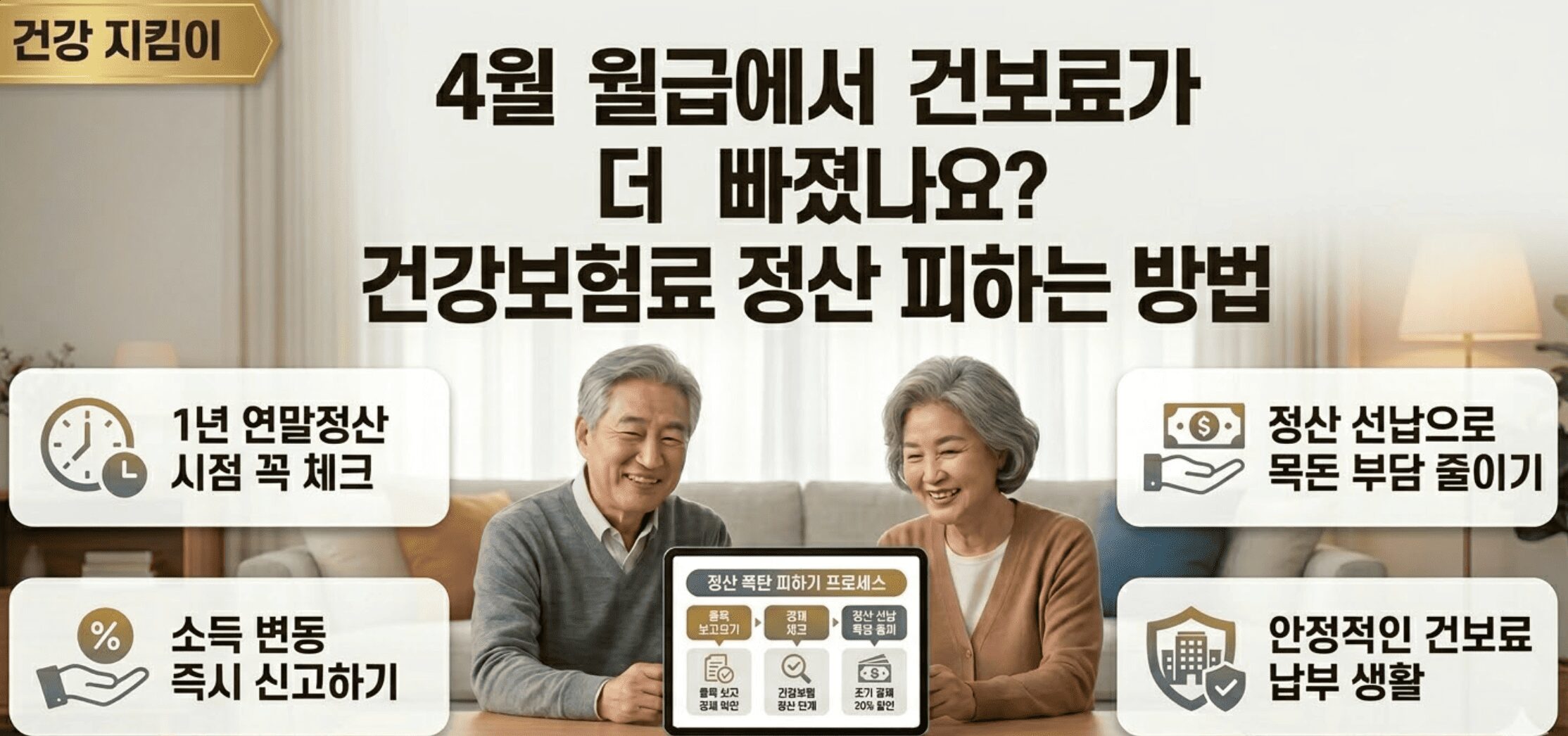 매년 4월이 되면 급여명세서를 보고 깜짝 놀라시는 분들이 많습니다. 평소보다 건강보험료가 훨씬 많이 빠져나간 것처럼 보이기 때문입니다. 그러나 이는 보험료 인상이 아닙니다. ‘건강보험료 연말정산’이라 불리는 정기 정산 절차에 따른 것입니다. 왜 추가 납부액이 발생하는지, 어떻게 하면 부담을 줄일 수 있는지, 2026년 기준으로 단계별로 정확하게 안내해 드리겠습니다.