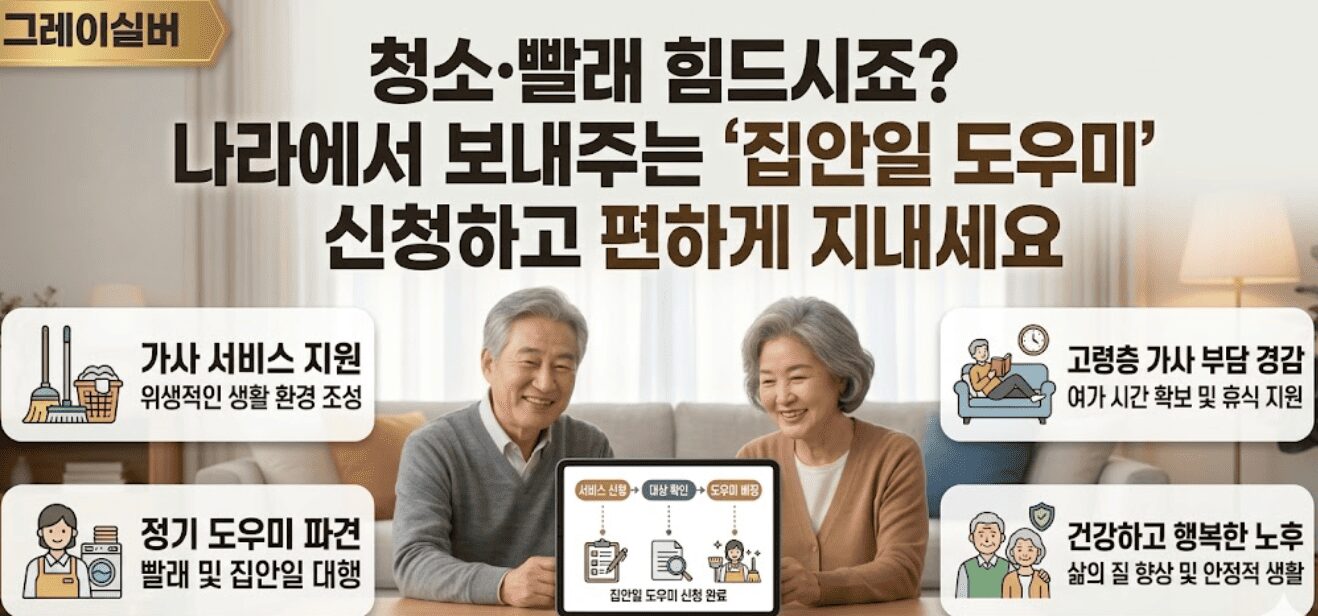 무릎이 아파 걸레질이 힘들고, 세탁기 드럼 안 빨래 꺼내기도 버거우신가요? 장을 보러 마트까지 걷는 것도 걱정이신 분들, 이제 나라에서 도와드립니다. 청소·세탁·취사·장보기를 대신해 주는 가사 지원 서비스가 무료 또는 저렴한 비용으로 제공됩니다. 어떤 분이 어떤 서비스를 받을 수 있는지, 2026년 기준으로 정리해 드립니다.