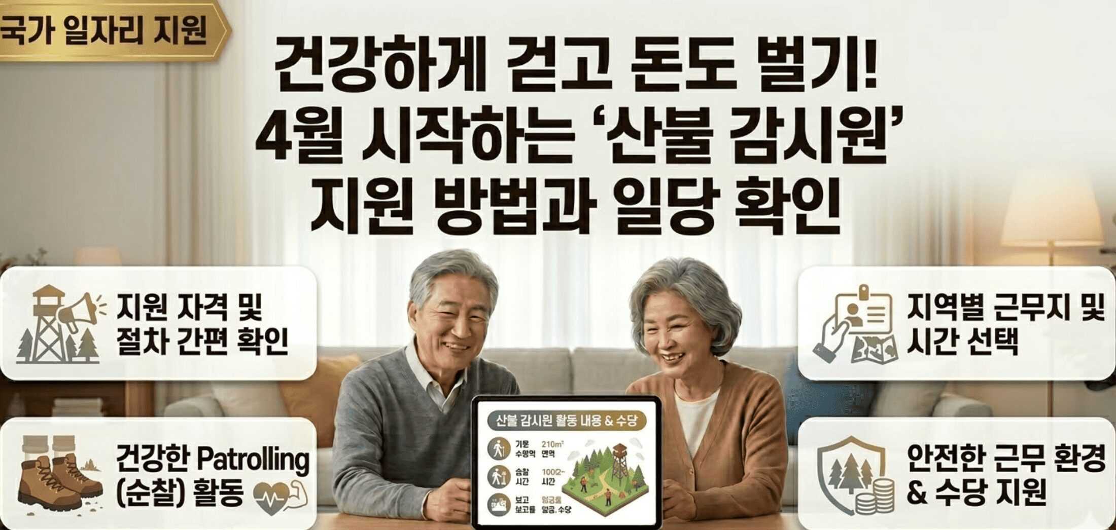 봄철 건조한 날씨가 계속되는 4월, 전국 산림에서 수천 명의 산불 감시원이 묵묵히 우리 동네 숲을 지키고 있습니다. 야외에서 걸으며 일하고 실질적인 일당도 받을 수 있는 산불 감시원 일자리는 체력이 있는 시니어 분들께 꼭 맞는 계절성 일자리입니다. 모집 시기, 일당 수준, 선발 기준, 활동 내용까지 검증된 사실만을 모아 안내해 드리겠습니다.