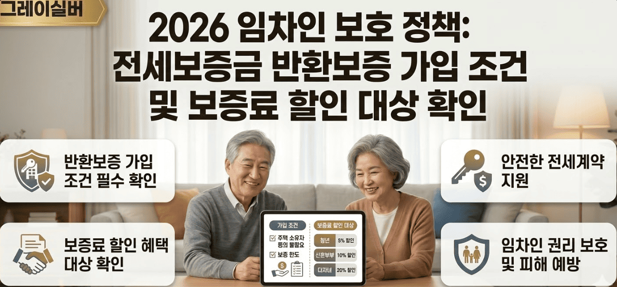 전세 사기가 계속 이슈인 지금, 평생 모은 노후 자금이 전세금으로 묶여 있다면 반드시 알아야 할 제도가 있습니다. 국가 공인 보증기관이 집주인 대신 보증금을 돌려주는 ‘전세보증금 반환보증’의 2026년 가입 조건과 시니어 우대 혜택, 보증료를 최대 40만 원까지 지원받는 방법을 지금부터 단계별로 안내해 드리겠습니다.