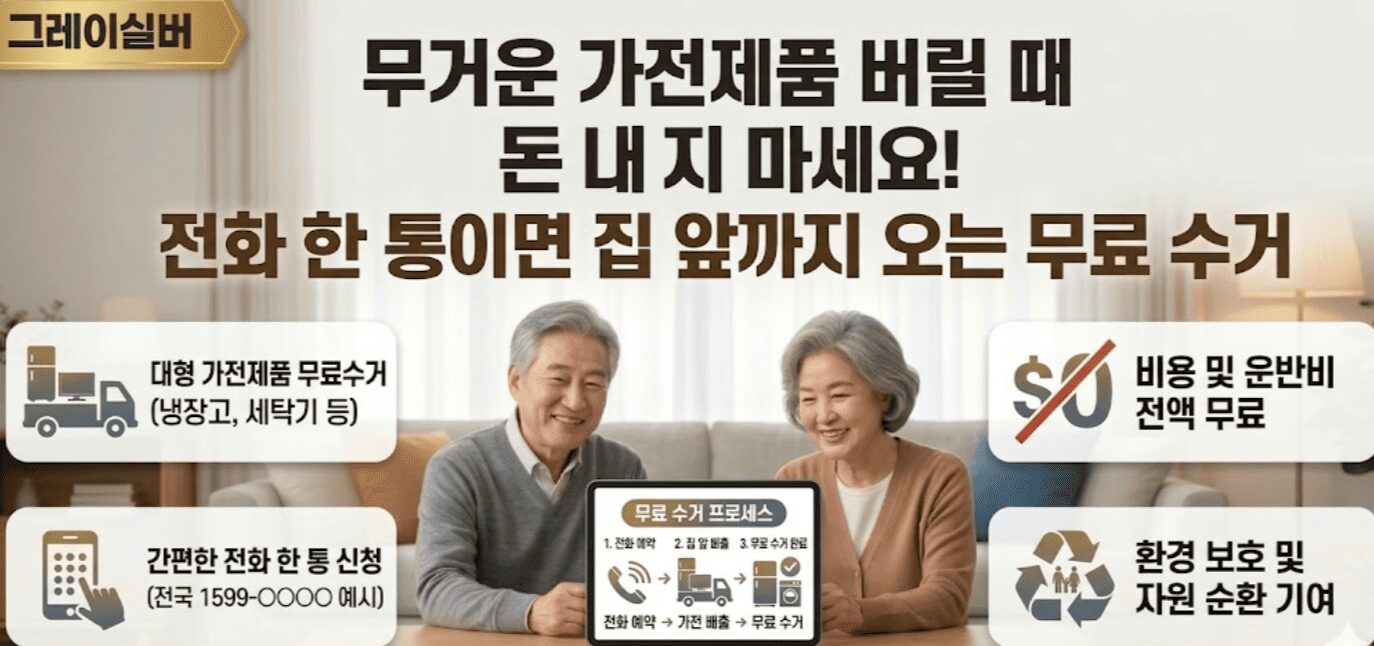 봄 이사 철이 되면 냉장고·세탁기·TV 같은 대형 가전을 어떻게 버려야 할지 막막하셨죠? 대형폐기물 스티커를 사야 하나, 무거운 걸 어떻게 들고 나가나 걱정하실 필요 없습니다. 정부와 지자체가 운영하는 ‘폐가전 무상 방문수거 서비스’를 이용하면 전화 한 통이나 인터넷 예약만으로 수거팀이 집 안까지 와서 완전 무료로 가져갑니다. 비용 0원, 스티커 불필요, 직접 옮길 필요 없습니다.